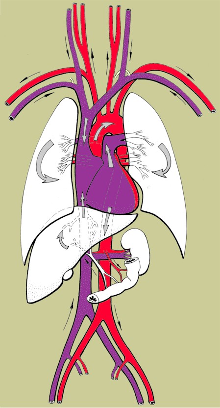 | cardiovascular system - heart and blood vessels, to maintain supply of vital materials to cells and removal of waste products |
